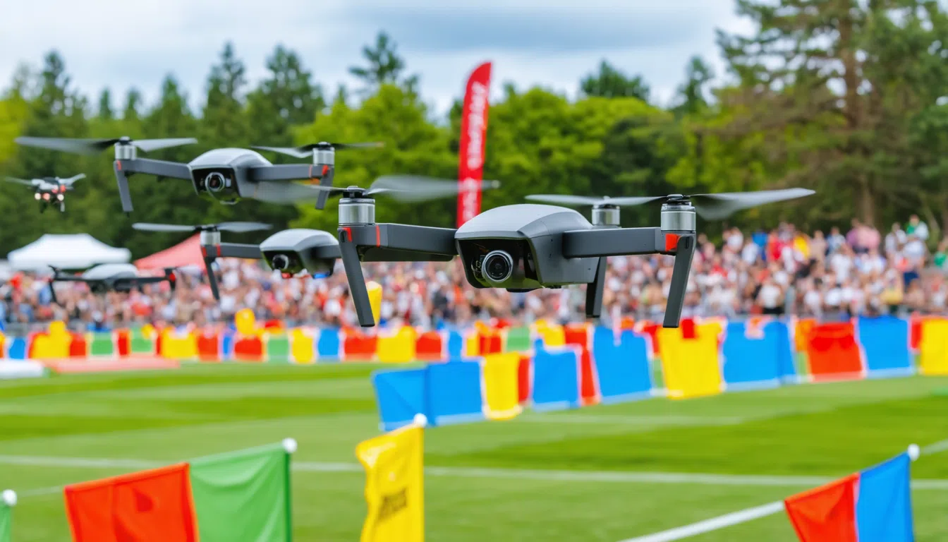 Im Mittelpunkt stehen die spannenden Rennen von 15 der talentiertesten Drohnenpiloten aus dem Land, die um die begehrten Qualifikationen zur Weltmeisterschaft im Drohnenrennen kämpfen. Die speziell gestaltete Rennstrecke fordert ein hohes Maß an Präzision und Schnelligkeit, was für Besucher spektakuläre Augenblicke verspricht. Ein Kommentator begleitet das Geschehen und gibt Einblicke in die Technik und die taktischen Feinheiten der Sportart.