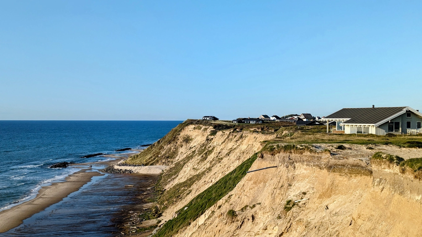 - Die Küste bei Lønstrup wird jährlich etwa zwei Meter durch die Kraft der Nordsee abgetragen.